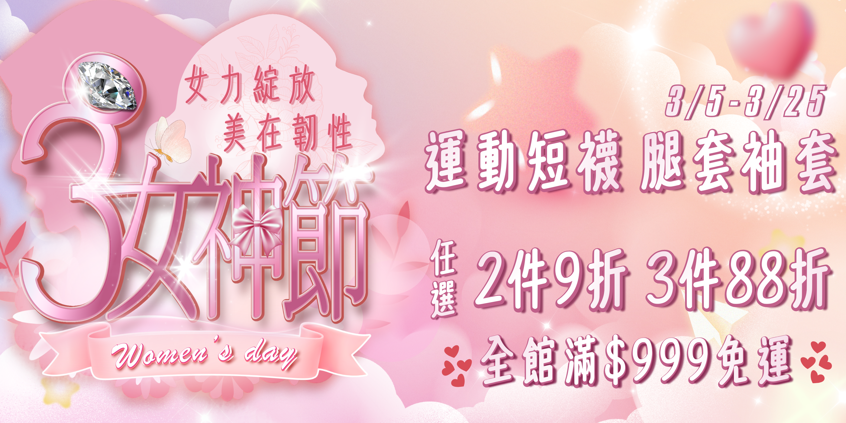 【38女神節】全館滿$999免運 運動短襪、腿套袖套任選2件9折、3件88折